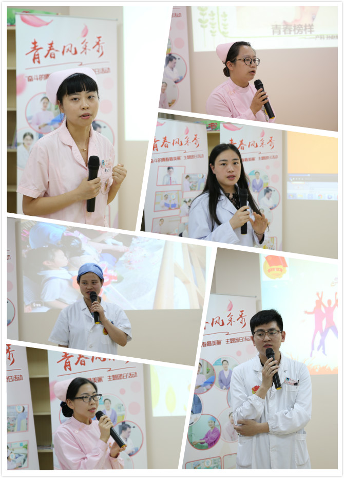 在风采展示环节,6位青春榜样分别代表医疗、护理、医技等不同岗位,通过PPT、视频、现场采访等形式,分享了各自的青春故事。儿保科许吟讲述了自己如何从零开始将宝宝早期教育发展为知名公益品牌的故事,产科B7病区孙赵娜分享了自己如何克服困难成为无锡首位且唯一一位国际认证哺乳顾问的故事,中心实验室杨蕊博士介绍了她在科研路上的艰难和收获,新生儿科医生肖娜用小故事讲述了她从普通医学生到新生儿科医生的成长心路,妇科C8病区董亚运结合开展志愿服务阐述了她对德和孝的理解,兼职团委副书记石皓则分享了自己团工作和业务工作两不误的经验。青春榜样们的分享令在场团员青年们动容,她们纷纷通过发送弹幕,向青春榜样致敬、表达祝福,并围绕分享内容进一步延伸提问。