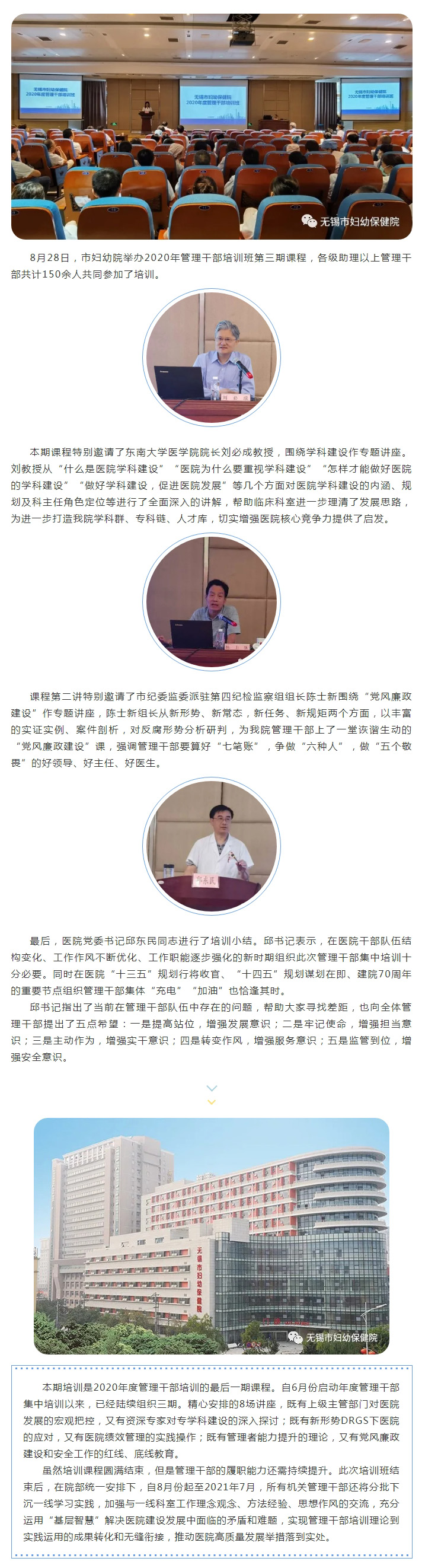 无锡市妇幼保健院2020年管理干部培训班圆满收官