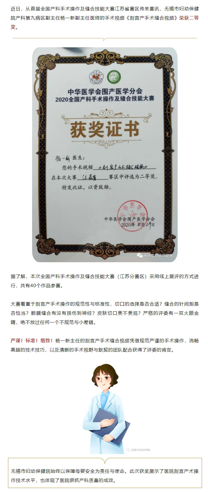 我院在首届全国产科手术操作及缝合技能大赛江苏分赛区荣获二等奖