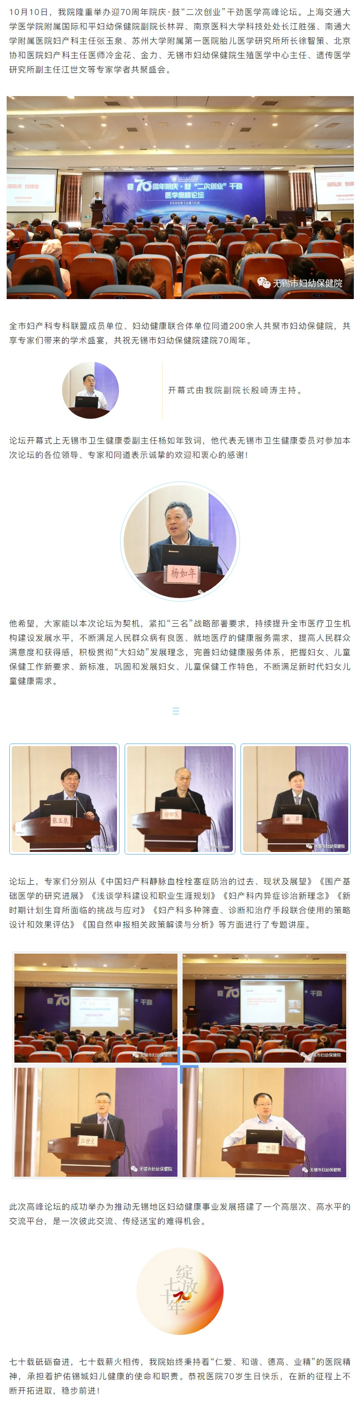 无锡市妇幼保健院“七十周年”院庆医学高峰论坛隆重召开