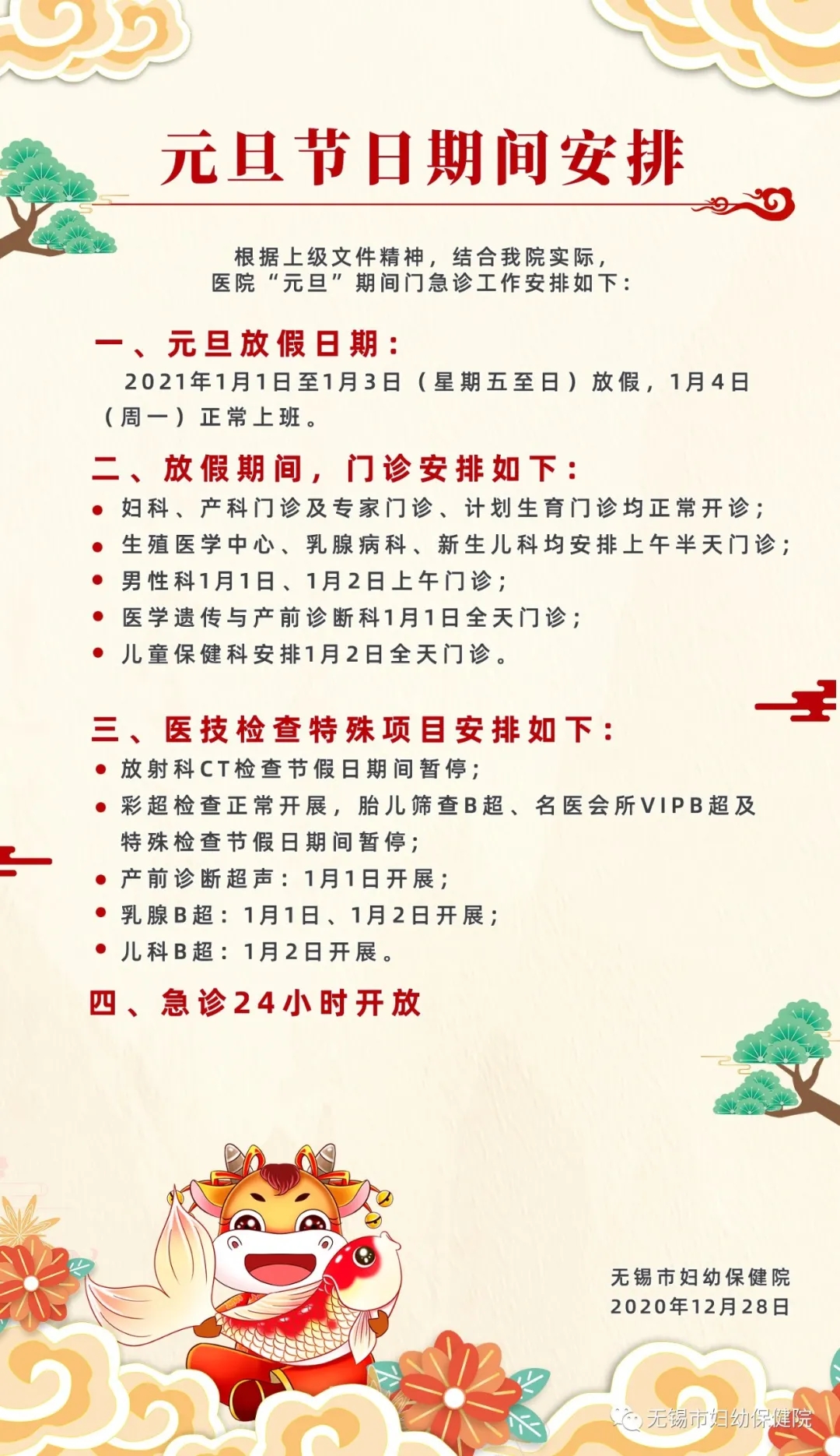 元旦节日期间就诊安排