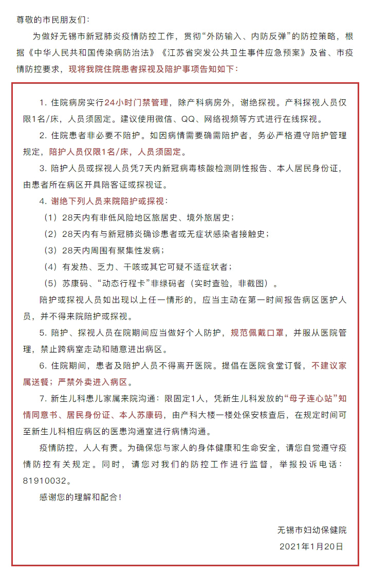 关于住院患者探视及陪护事项告示