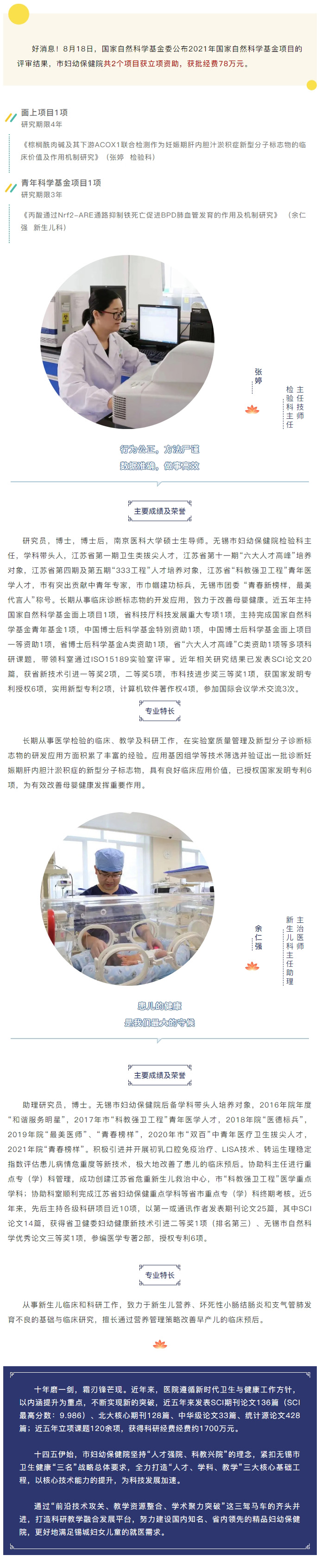 国自然基金结果公布,市妇幼保健院喜中2项!