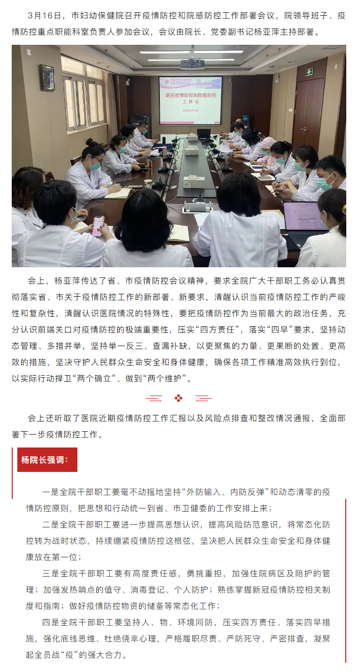 市妇幼院召开疫情防控和院感防控工作部署会议