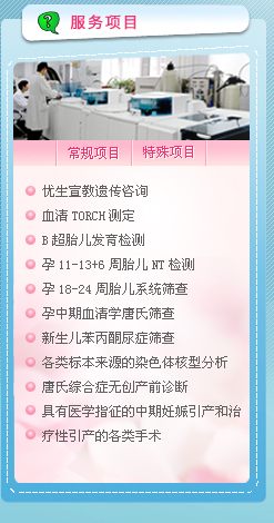 一种筛查开始于怀孕早期,对怀孕9~13周采用B超检查胎儿颈部透明带和检测母血中游离β-HCG、妊娠相关蛋白(PAPP-A)的方法,可早期筛查染色体21-三体、18-三体综合征。目前国内常用的筛查是在怀孕中期,对怀孕15~20周的母亲血液进行两联或三联检测。